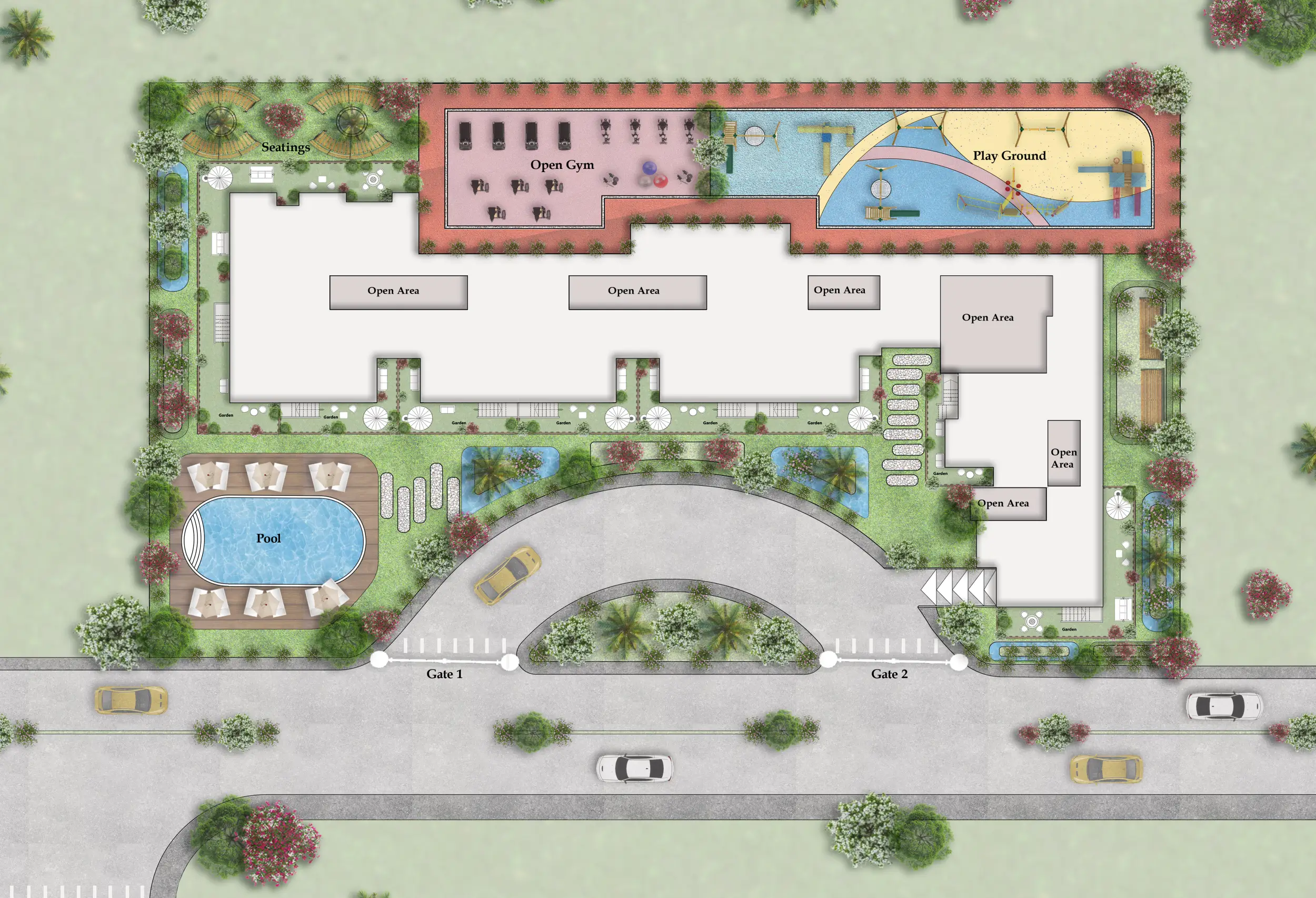 تمتد قمرة وسط مساحات خضراء غنّاء تُضفي تناغمًا هادئًا مع الطبيعة، وتتكامل مع مجموعة واسعة من المرافق المتكاملة التي تشمل مناطق ترفيهية، ملاعب للأطفال، مسارات للمشي، وأحدث المرافق الرياضية. كل تفصيلة تعكس التزام شركة الأولى للتطوير العقاري بالتميّز والجودة الفائقة.